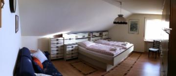 - 1 Zimmer mit Doppelbett und Schlafcouch, 1 Doppelzimmer, sowie zusätzliche Schlafgelegenheit im Wohnzimmer möglich. Kinderbett kann bei Bedarf zur Verfügung gestellt werden. Abstellraum mit Bügelbrett.