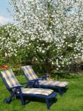 Liegewiese mit Liegestühlen unterm Kirschbaum